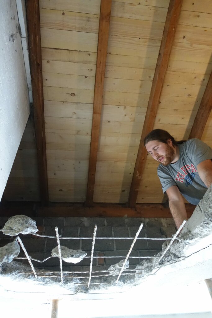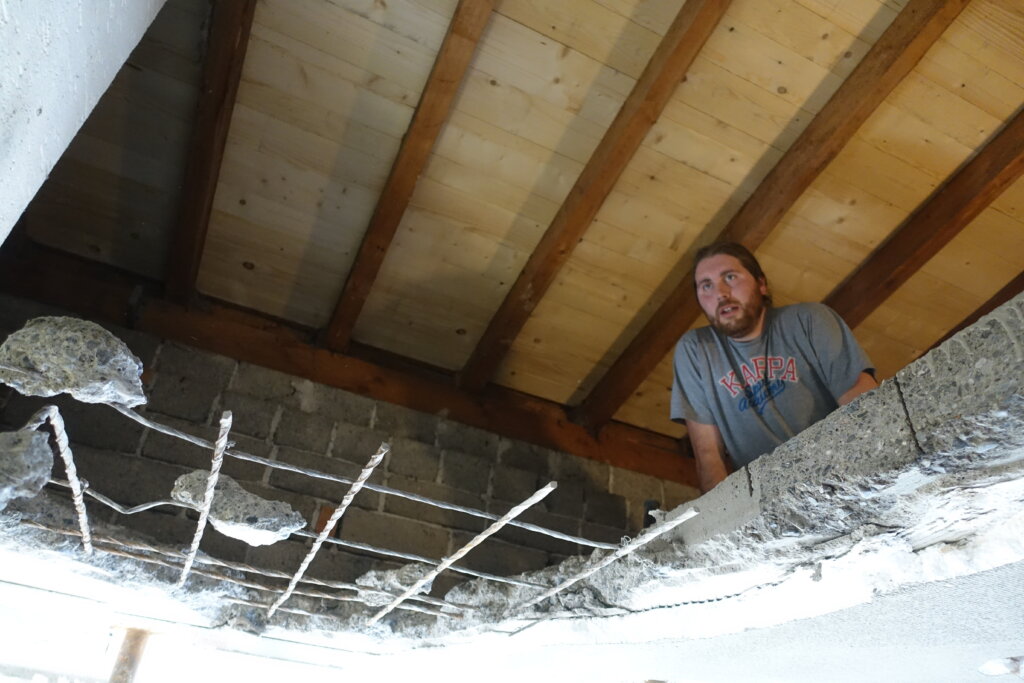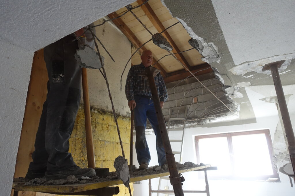 Diese war ca. 10cm dick und hatte nicht extrem viel Eisen drinnen – am einfachsten war es mit purer Gewalt und dem „Schlegel“ die Decke zu zertrümmern….