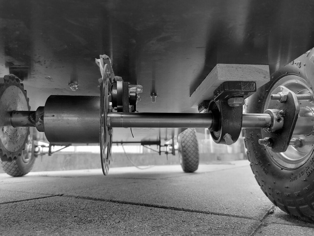 Danach hat sich rausgestellt dass die Schraubverbindungen an der Achse zu wenig Klemmwirkung aufweisen und die Achse und die Räder beim betätigen der Bremse durchdrehen.